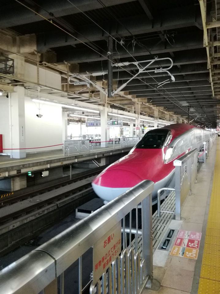 東京から盛岡を経由して秋田まで行くのですが、この「こまち」には同じE6系「はやぶさ」が連結されており、盛岡まで一緒に旅をします。